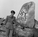 Stephen Fochuk kindly provided the following unique photos that have never before been published. They were made at the aircraft dump at RCAF Station Arnprior, Ontario, in September 1957. Stephen reports that the RCAF Officer in the picture is 'Skeets' Ogilvie of No.609 RAF Squadron and The Great Escape fame, and parts of Battle of Britain veteran Bf 109E WNr 1190 can be seen. The fuselage is in the background (behind the Komet's tail), resting on its right side, and the wings are in the foreground. This 'Emil' was coded 'White 4' and belonged to 4/JG26. Flown by Horst Perez, it belly-landed on 30 September 1940 at Beachy Head. The aircraft went to Farnborough, and later to the USA and Canada. In 1968 it returned to Britain and a restoration was started. It is now on display at the Imperial War Museum at Duxford. Les Butler has a profile of this aircraft.