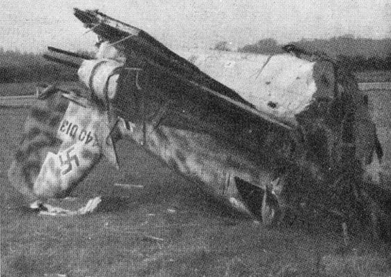 It is interesting to translate the book's caption of this photo: "The remains of a Me 163B, partially exploded after turning over. The front fuselage and the cockpit are torn off after the petrol tank exploded".