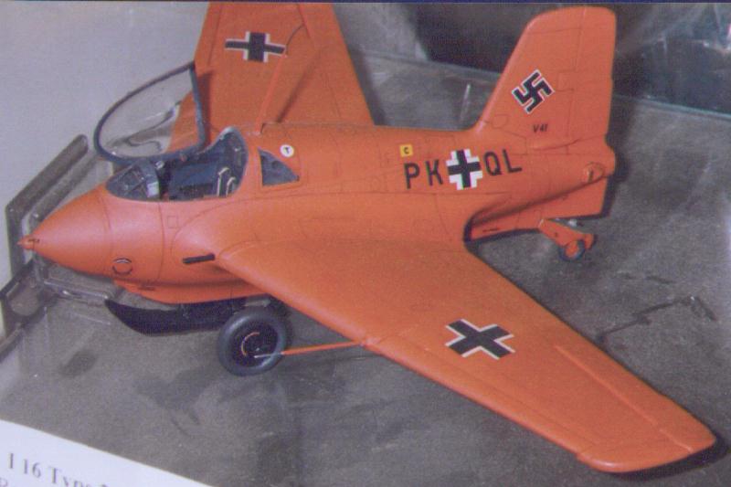 And a very nice Trimaster kit built by Allan Mayer. Allan's model is the famous all-red 310050/V-41/PK+QL flown by Wolfgang Späte on the first operational mission on 13 May 1944. Contrary to most other modelers, Allan used a semi-gloss paint which appears much more realistic than full-gloss paint. The cockpit looks like you could strap in yourself! Note that this aircraft still had 20 mm MG 151/20 machine guns instead of the later MK 108 cannons. The barrels of the MG 151/20 protrude through the leading edge, that of the MK 108 don't.