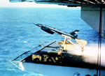 Craig Kaston kindly contributed these US Navy photos. The first photo shows a launch across the No. 1 catapult of the USS Ranger. According to 'Lightning Bugs', only the early launches were made like this, across catapult number 1.