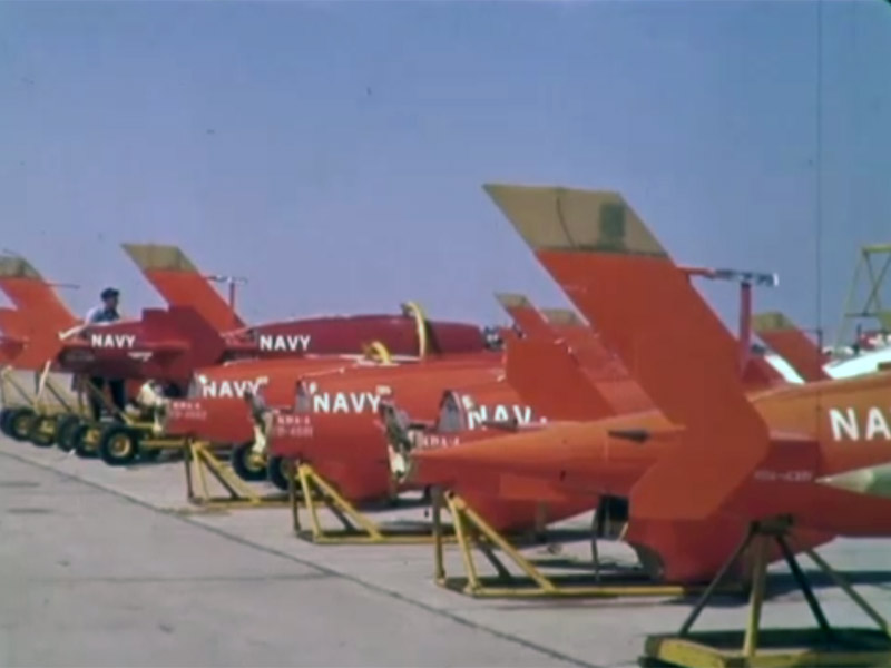 USAF Tech Order 1-1-636 'Exterior finishes, insignia and markings applicable to USAF aircraft' from 1957, sections 3-41 to 3-44, specifies 'insignia red' for drones. In the (later) FS595 system, this is FS 11136. Screen shot courtesy of 'Sabrejet'