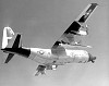 Craig Kaston provided another Air Force photo of DC-130A 57-0497, with the following text on the back: "NORTHROP CORPORATION'S RADIOPLANE Q-4B Supersonic Target Drone recently made its first free flight a successful one as it manouvered over the desert near Holloman Air Force Base, N. M. The sleek, 35-foot long drone, powered by a single General Electic J85-5 jet engine, streaked ahead of its GC-130A mother plane at controlled speeds up to Mach 1. The supersonic speed was reached without utilizing the afterburner with which this J85 model is equipped. Currently produced by Radioplane Division in Van Nuys, California and undergoing development for the U. S. Air Force, the Q-4B is designed to function as an aerial target for air-to-air and ground-to-air defensive systems. 10 September 1960. 0666-66-23754" Craig noted that 497 has a test boom on the starboard wingtip, and therefore it could be an earlier photo than the above color photo.