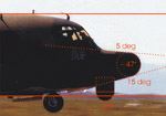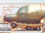 The twin radomes are a main recognition feature of the DC-130. Bryan Wilburn found two telelens photos that allowed a provisional measurement of the radomes and the nose. All dimensions are derived from the fuselage height of 159" (the bottom is at WL 126, the top at WL 285).