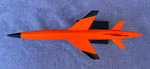 Again found on Ebay, in 2010, is this desk model of the Firebee I, painted orange with black tips. It measures 2.75" / 70 mm length and 1.75" / 44 mm span. The length suggests a scale of around 1:100, but the wing span does not agree.