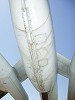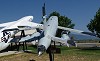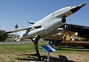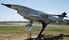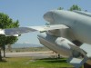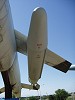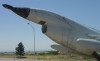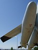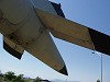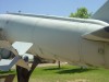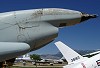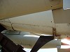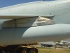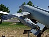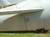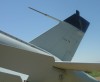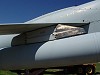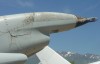 The Firebee's configuration is confusing. Like many museum Firebees it is a composite airframe. The museum lists it as an AQM-34L, but that appears to be incorrect. It carries 67 gallon tanks on wings with long tips as if it were an AQM-34M, but it has no endplates on the horizontals. The right side of the vertical tail shows remains of 'SB-17' (twice actually if you look very hard), suggesting that at least the tail belonged to an Model 147SB, the model preceeding the Model 147SC / AQM-34L. The camera window configuration looks slightly different from that of an AQM-34L: it has a transparant center window, that is blanked off on the USAF Museum's AQM-34L. Compared to the same AQM-34L, the rear belly vents (behind the exhaust) are missing. A peculair detail is that the rear fuselage shows attachment points for a ground launch RATO unit, a feature absent on all AQM-34's except the AQM-34V (compare with this photo, just to the right of 74-2147). For the time being this Firebee will be listed as a Model 147SB, although it is far from sure that the fuselage belongs to the SB tail.