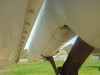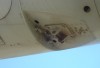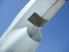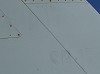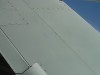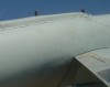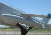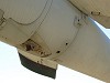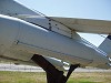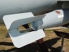 The condition of the Firebee is reasonably good. The black gel coat of the glass-fiber radome has peeled off on the top side. The paint on the camera hatch just aft of the radome seems to be wearing thin, and that on the battery cover behind it shows crazing or cracking. The black tips of the wings appears to wearing thin, the paint on the tips of the horizontals seems to hold better.
