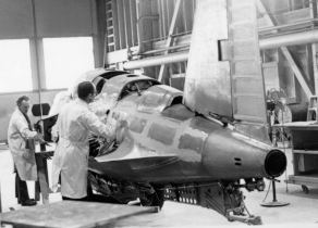 Rear view of the fuselage. It shows body putty over some rivited sections of the fuselage. The tail gear components appear to be all present.