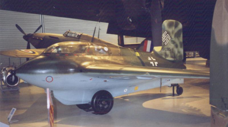 Another left side view, showing the Komet parked beneath what appears to be a Lancaster. The stenciling and markings are all typical of a Komet.