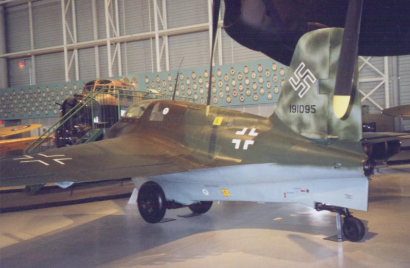 Nice rear left view, showing the camouflage scheme and the colors used. The Werknummer (191095) is only applied to the left side of the fin, as was the case with (nearly) all wartime Komets. The white outline swastika is typical for late-war aircraft.