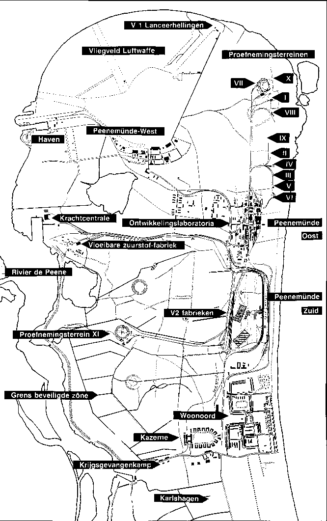 A wartime map of Peenemünde, where most of the test flying of the Me 163 took place. The text is in Dutch.