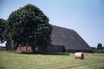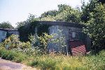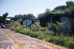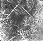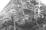 According to Bernhard's information, the buildings shown in the detail view shown below were Komet-related. Note that they were copied from the rotated photo. In the center and left of the center three identical large buildings can be seen; it is said these were Me 163 hangars. These buildings still exist. Slightly right of, and below the center one can see a small courtyard with two houses, which also still exist. In the lower right corner 5 small bunkers are visible; it is said that they where used to store Me 163 fuel. These too still exist, and two of them are used as private homes.