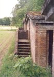 | The stairs leading to the 'balcony' inside each bunker. The walls are 0.65 meters thick, with a 0.45 meters thick roof. It appears the buildings had no walls on the sides, or perhaps wooden walls. Possibly this was a precautionary measure, to prevent that an exploding tank would destroy the building. On the other hand, having the blast exit on the side could lead to a chain reaction.