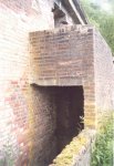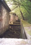 | A masonry canal runs behind the buildings. It is reported that the tanks were rinsed with water after each fuelling operation. The water ran into the water channel inside the building, draining into the canal.