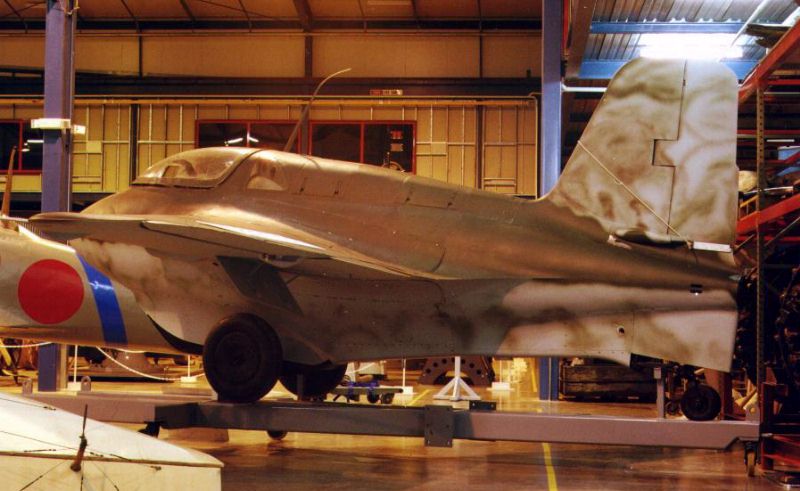 Nice left side view, showing the excellent state of this Komet. Although it is difficult to see, camouflage appears to exist of a green and a brownish green. Like on the right side, the tail mottling is very fine and detailed, not typical of wartime Komets. Swastika and fuselage Iron cross are stangely missing, as is the Werknummer.