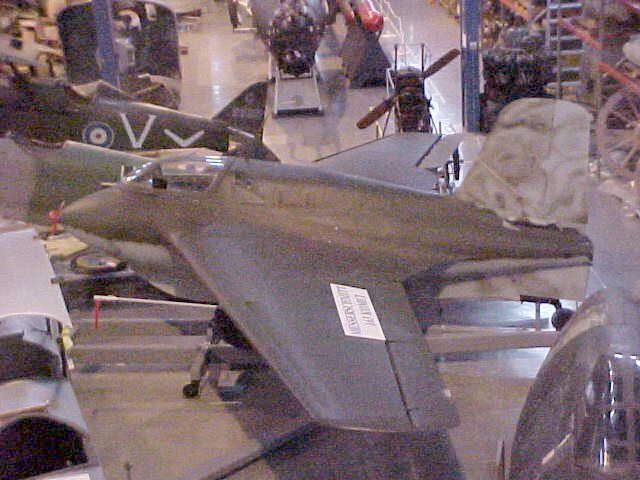 Interesting overhead view of the Komet. It shows that this Komet carries no markings whatsoever at this point in time. A bit peculiar is the large cardboard sign on the left wing displaying a text that appears to be 'MESSERSCHMITT 163 KOMET'. Tim Priest reported that the AWM's Me 262 is also visible in this photo, the front fuselage can be seen bottom right.