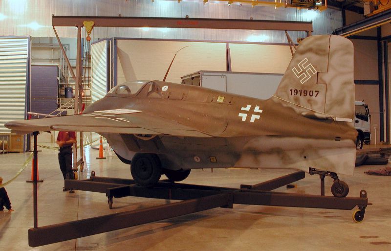 Left rear view, showing te Komet on its dedicated trolly, and a good overview of all the markings now painted on.