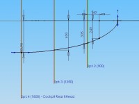 The canopy and upper fairing side profile is given in the drawing below. The attachment of the fairing to the main fuselage is also given. All dimensions in bold are taken from a Messerschmitt drawing.