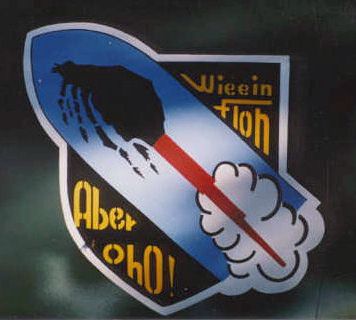 The famous 2. Staffel badge, as painted on the replica. The badge was designed by Komet pilot Hans Bott.