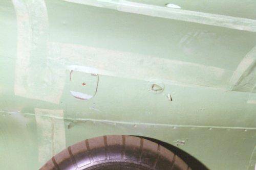 Detail view of the strips of doped fabric, used to fix the wooden substitute wing root panels.