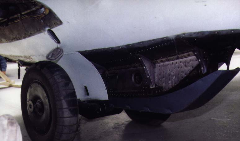 Right side view of the landing skid, the start dolly and the 'skid-well' fairing, cover plates removed.