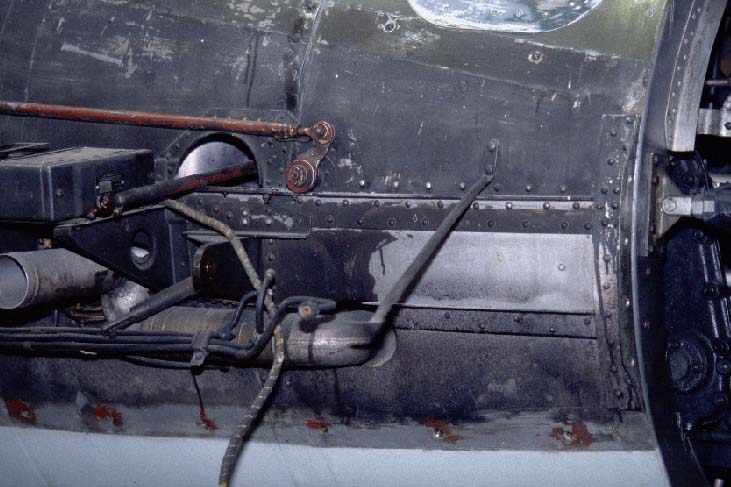 Detail view of the 'black boxes' and mechanical systems in the rear of gun bay.