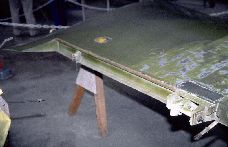 View of the rear of the inner wing. The two hinges of the trim surface can be seen.