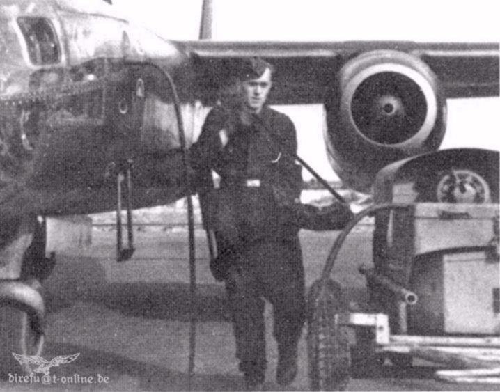 An Anlasswagen parked alongside an Arado 234. Again the colors of the chassis and the equipment differ. Possibly this photo shows where the electric cable connects to the Anlasswagen. Some details of the small petrol engine inside the hood are also visible, but exactly what we see is yet unknonw. Perhaps we are looking at the generator?
