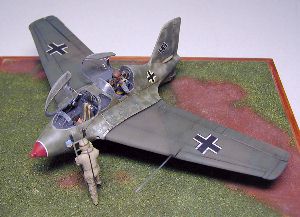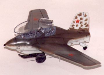The Dragon Me 163S shown below was built by Ludo Kloek from Belgium. Ludo based his model on a photo showing a Russian-captured Komet different than the rather well-known 'Yellow 94'. Therefore the smaller Russian stars (taken from a Microscale 1/72 sheet) should be correct. Unfortunately that photo can't be found at this moment. Possibly it was the profile drawing on page page 64 of Profile 225: it shows a anonymous Russian two-seater, but with a big star on the unmottled tail.