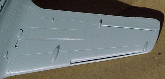 the appearance of the slots can be improved by adding tiny ribs (stretched sprue). Note that the slot is fixed (it is not a movable slat), and no panel lines are present at the inboard and outboard connections with the wing