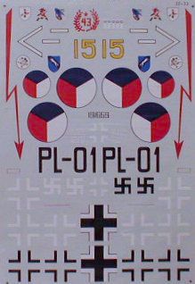 Microscale sheet 32-033 provides decals for the East Fortune Komet, 191659/Yellow 15, plus three Me 262's
