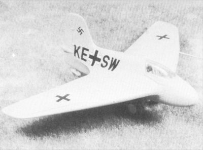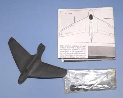 The picture above was scanned from 'The new Airfix magazine', October 1988 issue (volume 1 number 2). Judging from the photograph, the rear fuselage shape is very narrow, which means accurate in this case. The wings show a correct kinked leading edge. The canopy shape, a difficult aspect of the Me 163A, is difficult to judge in the photo, but looks good. It appears to be of the simplified type of the later Me 163As.