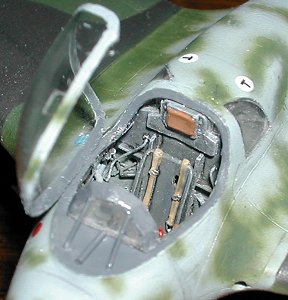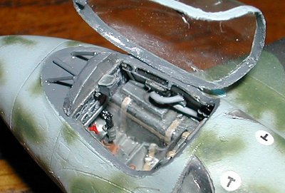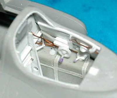 Upper fuselage half added, showing sidewall detailing, with throttle, trim wheel and piping. | ||