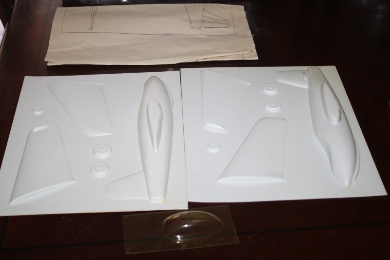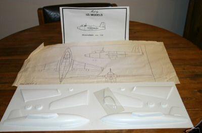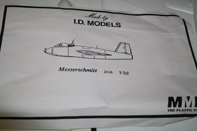 The contents of the ID Models Me 263 kit: a large sheet of vacformed components, a vac canopy, and drawings.