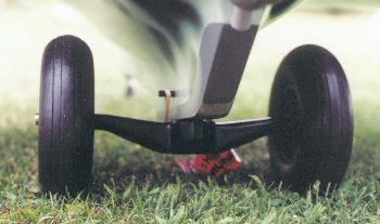 Kevin's model has a scale-like starting dolly fitted under his Komet. During take-off the dolly is only attached by two steel pins with a loose fit. Upon take-off the dolly falls off. It works rather well. | |