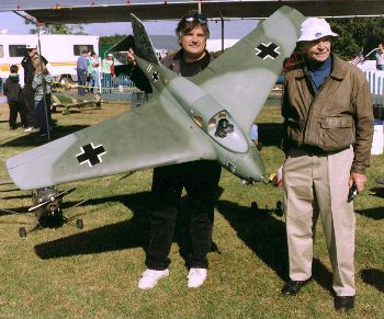 The Komet builder and Komet pilot posing with the model. This meeting also led to an article called Sal's dream published in Model Aviation. | |||