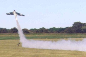 Kevin is planning to fly his model with rocket propulsion, but he hasn't been given a permit yet to use the rocket engine he needs. The engine run shown here uses a much smaller rocket engine that does not have sufficient thrust to fly the model. But it surely looks nice! | |