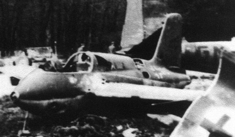 This photo shows the aircraft probably directly after Brandis was taken by American troops. Contrary to the other picture, in this picture the tail appears vaguely to be painted in a two-color splinter scheme, and mottles can't be seen.