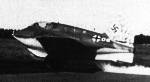 5. | These very puzzling pictures show a Komet coded 'White 06' starting its take-off roll. The mottle pattern on the tail is completely identical to that of 'White 05', and it also has the typical curvature of the camouflage division on the nose. I'm therefore convinced this is the same aircraft as 'White 05'! The '6' can't be misread: the sharp upper left corner of the figure '5' is definitely missing, and the opening in the lower left part of the '5' is missing. The most likely explanation is that irradiance (which has the effect of making bright objects look larger than they actually are) causes the '5' to appear as a '6' (irradiance explanation courtesy of Randall Clague). | |||||