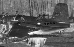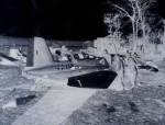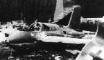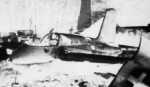 The first photo was made on 2 May, the second was made somewhere in May, the third and fourth in June. The deterioration is considerable. The pictures show some interesting details. The canopy is missing, as are most of the wing roots panels. Some holes are visible in the front part of the wing roots panel. The original 30 mm cannon port is visible on the leading edge. Above and slightly inboard of it , another hole is visible. This has the correct position for the boresight installation of the cannon according to the handbook, but I know of no other picture of 'White 05' or any other Komet that shows it open. The pictures also quite clearly show two different colors used on the top side.