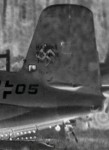 Two likely color combinations are mid-war day-fighter colors RLM 74 and RLM 75, or the early-war fighter colors and standard bomber colors RLM 70 and RLM 71. The last option appears quite illogical, since no fighters were painted in these colors in since 1941. I compared the pictures to many photographs of aircraft with known colors, both early-war 70/71/65 and mid-war 74/75/76. And there was only one answer possible: this aircraft was painted in RLM 70/71! The low contrast between the colors, and the very dark appearance support this. It could be reasoned that the 'old' greens 70 and 71 are a good choice for airfield camouflage, better than the greys 74 and 75. Also, Bad Zwischenahn did house a Ju 88 bomber unit (KG30) and a weather flight with He 111 and Ju 88 in the summer of 1944, so EK16 could have borrowed 'bomber' paint from them.