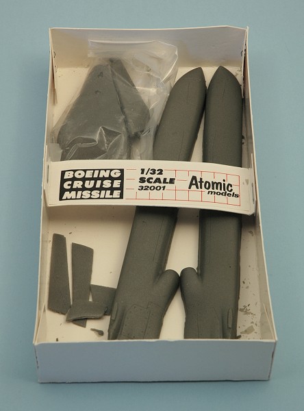 I was surprised to see your web page covering the Atomic Models 1/32 AGM-86B cruise missile - surprised and somewhat nostalgic, as I worked for Atomic Models during it's brief existence, and I was the person responsible for the design of the box graphics and the painting of the missile. I suppose I must have done the instructions as well, which makes me responsible for the error in the wing dihedral. I don't know whose idea it was to add the inside paper strap; it does look rather nice, doesn't it? I had forgotten about that. This was before computer desktop publishing; you paid by the line at a phototypesetting place to get your type to your specifications, had your artwork photographed on a stat camera to the desired size and used Chartpak tape for things like grids, which you then physically pasted up and gave to the printer. I had forgotten that we'd opted for a two-color label, which may have been a little extravagant. Although adding a second color didn't really cost all that much more. It was a long time ago...