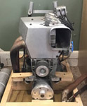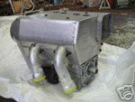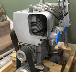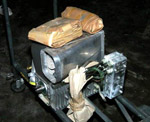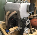 during the rebuild, a Kiekhaefer Aeromarine 440 was installed. I think it was installed in the upright position, with the inlet side on the right. An air inlet scoop was required because of the large air filter. A Kiekhaefer Aeromarine logo was applied to the air scoop