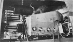 | 2. Most likely the initial Hirth installation (on its side), on its inlet side. The cooling air exits from the bottom. Exhaust routing unclear - are the two 'wing profile' shapes the exhaust ports in the side of the fuselage? N502BD had one such exhaust port.