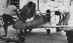 initially had the Kiekhaefer Aeromarine 440 engine like N500BD, but it was installed differently. It was rotated on its side, with the inlet side up. N501BD was not flown with this engine, it was replaced before the first real flight