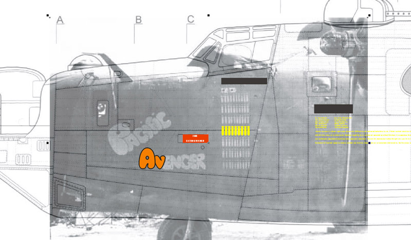 | A customer wanted decals for B-24J-1-CO serial number 42-72975, of the 38BS / 30BG, nicknamed 'The Pacific Avenger'. He wanted to present a 1/72 scale model of the aircraft to the family of a crew member. This page shows the work involved in making that decal set. |