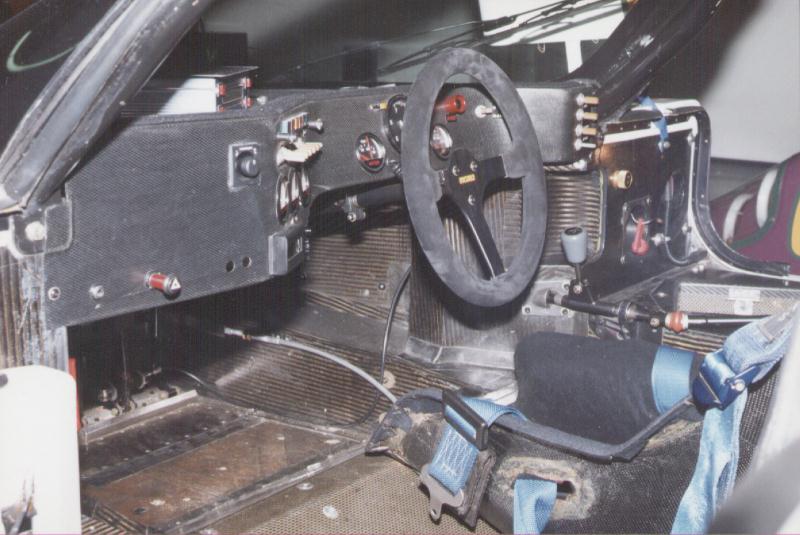 Left side view of the cockpit. Note that the camera's flashlight greatly exagerates the carbon fabric 'print'; under normal lighting conditions it looks much less spectacular. A cut-out in the chassis to make room for handling the gear shift can be seen.