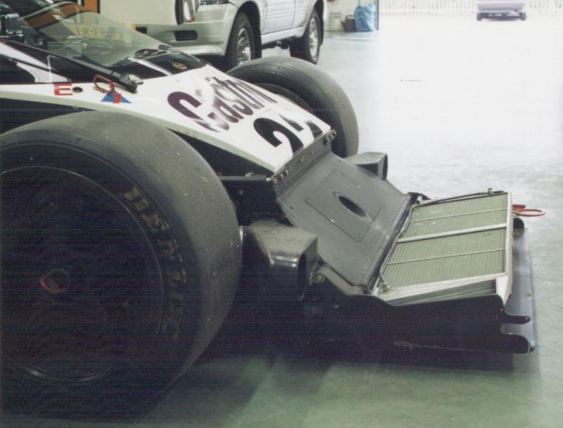 View of the nose and radiator. Electrical safety disconnect is visible near the windshield wiper attachment.