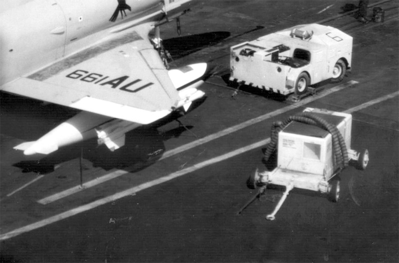 | The Type 3 APU being used to start up an A-4 on board USS Saratoga. It has no air hose attached to the air hose coupling.