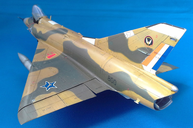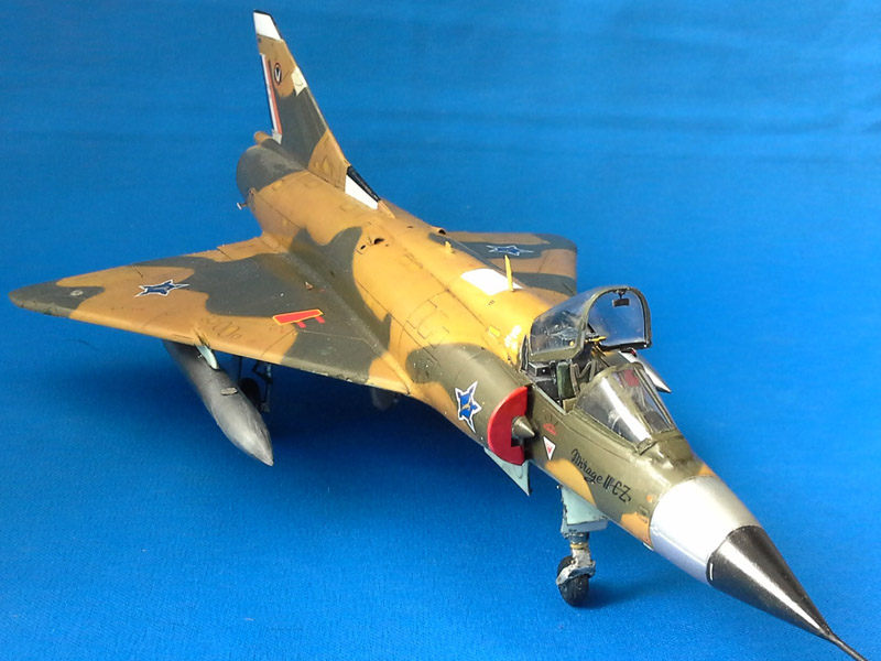3 april 2021Brian Kirwan: "Hierbij Eduards 1:48 Mirage IIICZ in de 'Profipack' uitvoering. Dit is een IPMS recensiemodel en ik zal binnenkort een volledig bouwverslag aan de redactie van de MIP opsturen. In de tussentijd alvast een indruk van het eindresultaat. Het is een mal die stamt uit 2004. De Profipack uitvoering heeft 140+ plastic onderdelen plus foto-ets delen, maskers en een zeer uitgebreid decalsvel met vijf opties voor drie landen. Op een aantal minpuntjes na is dit een schitterende kit die goed past en goed uitgerust is met bewapening als je dat wilt. Ik heb het model gebouwd als nr. 800 van het 2e Eskader van de South African Air Force, op de vliegbasis Waterkloof in 1982. De Mirage III is één van fraaiste staaljagers en deze Zuid-Afrikaanse uitvoering past goed in mijn verzameling, naast zijn landgenoot de Mirage F1AZ (zie november 2020). Ik ga er nog een maken!"