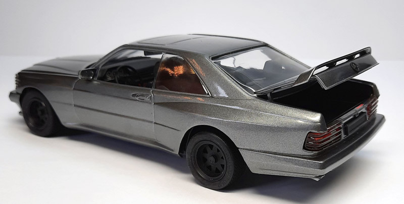 5 april 2021Wim Hoogendoorn: "Dit de Revell 1/24 Mercedes-Benz 560 SEC Zender. Zender was een Duitse tuner die voornamelijk bodykits en velgen monteerde. Het model is een voor die tijd (1989) mooi gedetailleerde kit, met hier en daar wat gietfoutjes. Het model is zo uit de doos gebouwd, daarna gespoten met Tamiya Gun Metal en afgelakt met Zero Paint 2K glanslak."